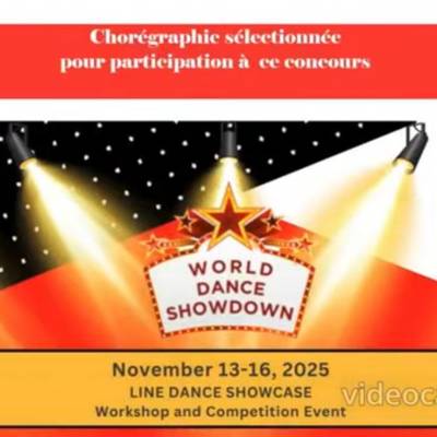 Magnifique victoire d'Isabelle Outters, notre prof de country, dont la chorégraphie, sur 140 sélectionnées, remporte, dans sa catégorie, la première place du prestigieux concours international WORLD DANCE SHOWDOWN EVENT à Indianapolis.